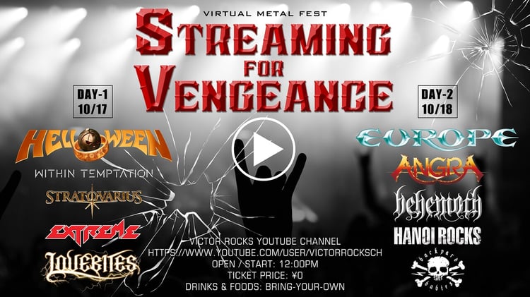 ラインナップは17日がHelloween、Within Temptation、Stratovarius、Extreme、LOVEBITES、18日がEurope、Angra、Behemoth、Hanoi Rocks、Backyard Babiesの計10組。配信プラットフォームはビクターエンタテインメントのHR/HM専門コミュニティ・VICTOR ROCKSのYouTube公式アカウントで、両日共に12:00スタートし、各日9時間にわたってライブ映像が楽しめる。