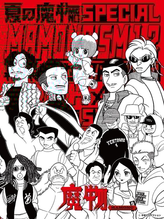 描き下ろされたのは、「夏の魔物SPECIAL MAMONOISM」に出演するKOHH、Tohji、AK-69、ゆるふわギャング、Jin Dogg、¥ellow Bucks、鎮座DOPENESS、MONYPETZJNKMN、アントニオ猪木、長州力、武藤敬司、前田日明と、YouTube配信番組「MAMONOISM ZERO」のヘッドライナーである5lack、SEEDAのイラスト。集合ビジュアルの中央には、マンガ「ブラック・ジャック」のピノコが描かれており、ピノコはGhetto Hollywoodのグラフィティがデザインされた魔物パーカーを着用している。ビジュアルのデザインはTBS系「水曜日のダウンタウン」のアートディレクションを手がける榛葉大介が担当した。