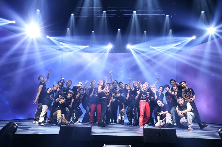 その後、THE RAMPAGEとFANTASTICSのパフォーマー、全員がボーカルとパフォーマーを兼任するBALLISTIK BOYZの計26名がステージにそろい、それぞれダンスをソロで披露。このパフォーマーショーケースのコーナーをきっかけにコラボステージのコーナーが始まった。最初の「New Jack Swing」ではTHE RAMPAGEのボーカル3人と、陣、山本、岩谷、浦川、武知海青、後藤拓磨、FANTASTICSの佐藤大樹と木村慧人、BALLISTIK BOYZの深堀と奥田が共演。BALLISTIK BOYZ、THE RAMPAGEのLIKIYA、神谷、藤原樹、鈴木、FANTASTICSの世界、瀬口黎弥は「Front Burner」で迫力満点のパフォーマンスを繰り広げた。センターポジションにTHE RAMPAGEの与那嶺瑠唯が陣取り始まったのは「WHAT A WONDER」。この曲のパフォーマンスには与那嶺のほか、FANTASTICSの八木、中島、堀夏喜、澤本夏輝、THE RAMPAGEの長谷川慎と龍、BALLISTIK BOYZの日高と松井が参加した。