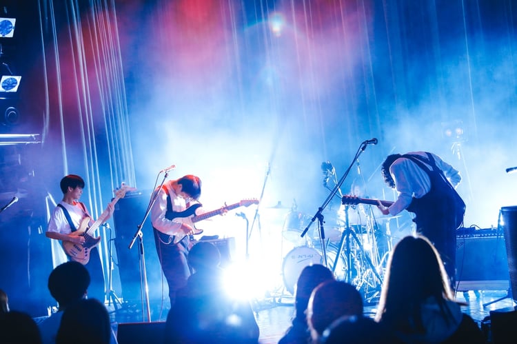 和やかなMCから一転し、「Night Gimmick」では宮澤と堂免がクールなビートを刻み、会場の空気を変化させた。「サニー」の壮大な音像でフロアを圧倒したあとは「ホリデイ」を軽やかに演奏。さらに柔らかな照明の下で「500円玉と少年」をノスタルジックに披露した。続くMCでは松本の発案で決まったという今回のツアーの衣装について4人がトークを繰り広げ、オーディエンスを和ませる。続く「23」では松本がキーボードを奏で、リュックと添い寝ごはんのさらなる音楽性の広がりを感じさせるひとときとなった。ライブ後半、「渚とサンダルと」からは再び勢いのある楽曲を連投してフロアのテンションを上昇させる。「グッバイトレイン」ではオーディエンスが笑顔で手拍子し、4人が鳴らすサウンドを全身で楽しんでいることをうかがわせた。最後は「ノーマル」をエネルギッシュにプレイし、ライブを締めくくった。