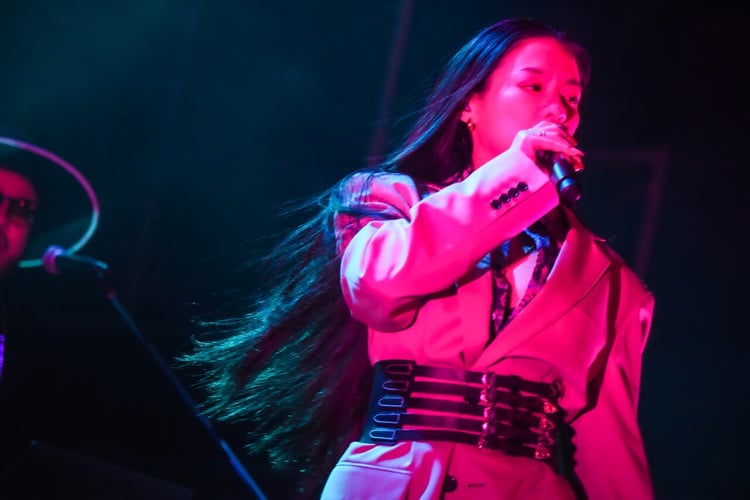 NENE退場後、Awichは娘と一緒に亡き夫の骨を海に散骨した過去を語ると、その経験を歌った「Ashes」を披露。続く「Revenge」では、“最大の復讐は、誰かを傷付けることでも憎むことでもなく許すこと”という決意のような思いを歌った。ライブ終盤、不穏なビートとともに始まったのは「洗脳」。AwichとゲストのDOGMA、鎮座DOPENSSSが個性あふれるマイクリレーを繰り広げ、フロアの盛り上がりは最高潮となった。