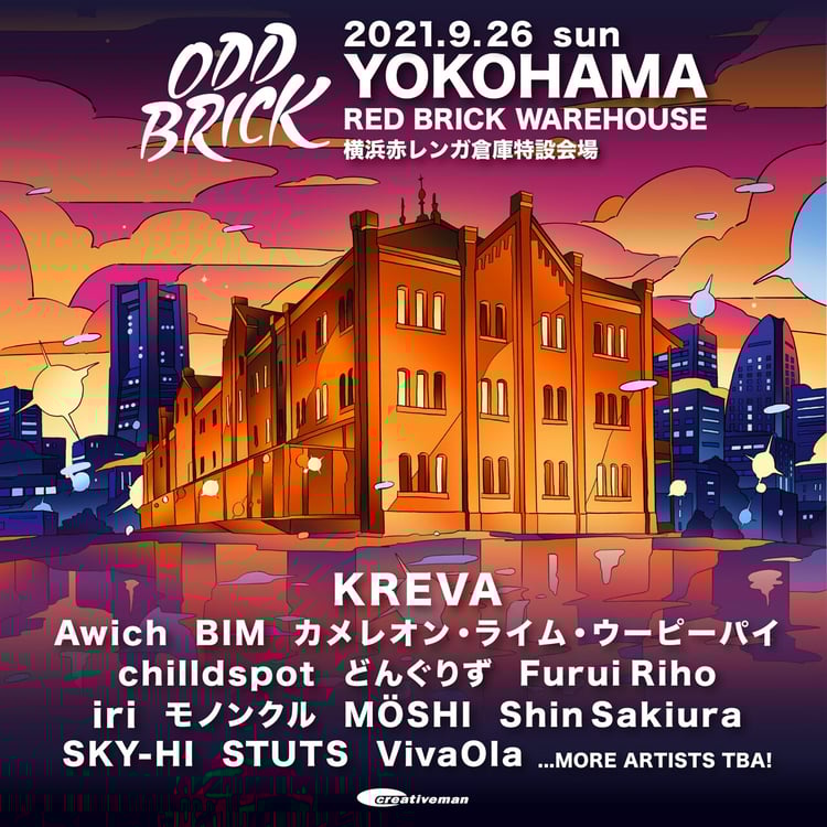 「ODD BRICK FESTIVAL」はクリエイティブマンプロダクションが主催する、ユースカルチャーに特化した新たな野外フェス。ヒップホップ、R&B、シティポップ系のアーティストが多数出演し、フリーエリアには飲食やアパレルなどの幅広いジャンルからの出店を募る。今回の発表ではKREVA、Awich、BIM、カメレオン・ライム・ウーピーパイ、chilldspot、どんぐりず、Furui Riho、iri、モノンクル、MÖSHI、Shin Sakiura、SKY-HI、STUTS、VivaOlaの出演が明らかになった。アーティストは今後も追加される。