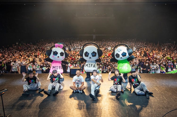 ソロパートを終え、互いのパフォーマンスを称え合うように笑顔を交わした桜井とGAKU-MC。パンダをモチーフにしたMIFAのマスコットキャラクターのミファンダ、ミソラ、レッシをステージに招き入れた2人は、3匹と横一列に並び、「HAPPY HOUR」を歌い踊った。パンダたちに別れを告げると、彼らはラテン風の「手を出すな!」、リモートレコーディングで作ったという新曲「コエノチカラ」を熱くパフォーマンス。「勝利の笑みを 君と」をアップデートした“日本サッカーのために”バージョンでにぎやかに本編を終えた。