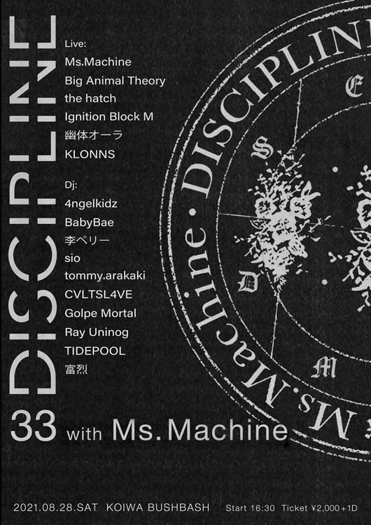 8月28日に東京・Bushbashにてライブイベント「Discipline #33 with Ms.Machine」が開催される。