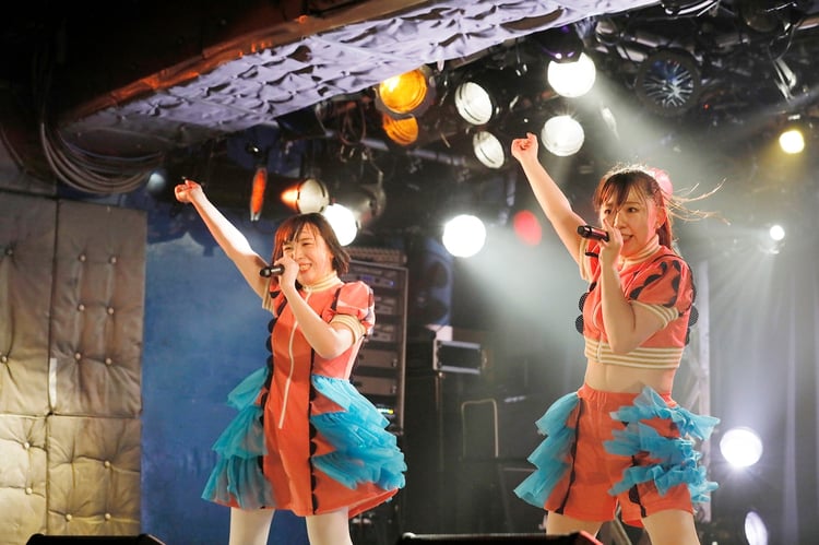 フレッシュな姿に観客が見入る中、「君が一番かっこいいじゃん」「朝日のようにさわやかに」の元気印2連発で勢いよく2周年ライブをスタートさせた2人。普段のライブなら2、3曲でトークを挟むところだが、ワンマンライブならではのノンストップパフォーマンスでバラエティ豊かな楽曲たちを次々に届けていく。7曲目の「ダンスを止めるな」を歌い終え、すっかり体もホカホカになったところで、ようやくMCへ。2周年を迎えたことについて、朝倉は「もう2周年かあ」と「まだ2周年なのね」の気持ちが両方あるものの、2年とは思えないほど仲良しになってビックリと語り、それに頷いた寿々木は「2年間の私たちを今日のライブでぶつけてやろう」と意気込んだ。