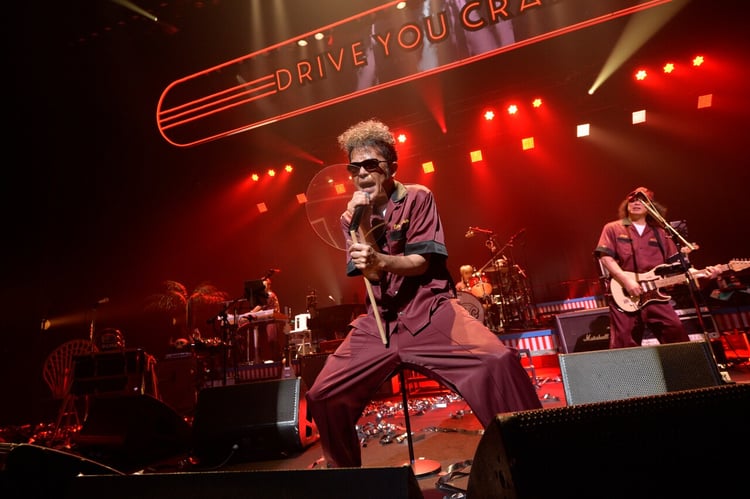 ロックンロールをテーマにした全曲新曲のニューアルバム「ツイス島&シャウ島」を8月18日にリリースしたばかりのユニコーン。彼らが観客の前でライブを行うのは、2019年実施の前回ツアーからおよそ1年8カ月ぶりとなる。コロナ禍にもライブ映像の公開や初の展覧会開催などでファンを楽しませてきた彼らだが、今回は直接コミュニケーションを取れるひさびさの機会ということもあり気合い十分といった様子。ABEDONと奥田民生はリーゼントにサングラスというスタイルで登場した。