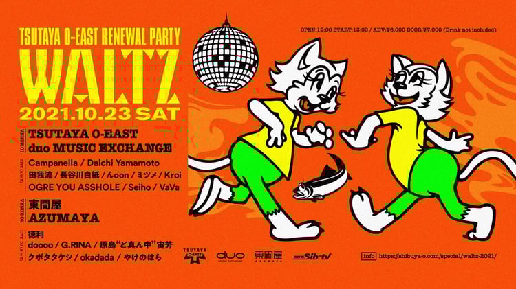 10月23日に東京・TSUTAYA O-EAST、渋谷duo MUSIC EXCHANGE、東間屋の3会場を舞台にしたライブイベント「WALTZ」が開催される。
