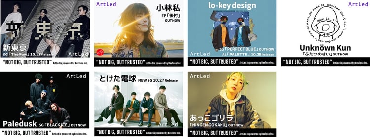 ArtLedは“Artist-led(アーティスト主導)”を標榜するデジタルマーケティングブランド。小林私、あっこゴリラ、とけた電球、Unknöwn Kun、lo-key designのプロモーションやマーケティングをサポートしている。本日10月1日より都内13カ所18面で、ArtLedが手がけるアーティストのネットワークボードが掲示されており、それに連動したデジタルプロモーションが展開されている。