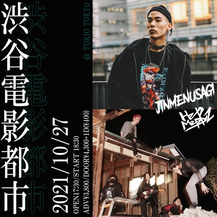 JinmenusagiとHelp Me Plyzによるツーマンライブ企画「渋谷電影都市」が10月27日に東京・TOKIO TOKYOで開催される。