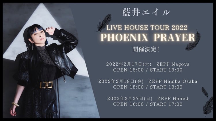 藍井エイルのライブツアー「藍井エイル LIVE HOUSE TOUR 2022~PHOENIX PRAYER~」が来年2月に行われる。
