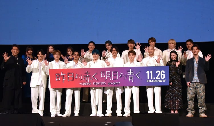 「昨日より赤く明日より青く-CINEMA FIGHTERS project-」のプレミア上映会&スペシャルライブが本日11月18日、東京・サンプラザ中野ホールで行われ、各作品に参加したGENERATIONS from EXILE TRIBEのメンバーおよび主題歌を担当したアーティストが舞台挨拶に登壇した。