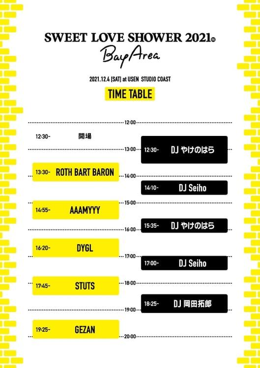 OPEN 12:30 / START 13:30 / END 20:00 (予定)
