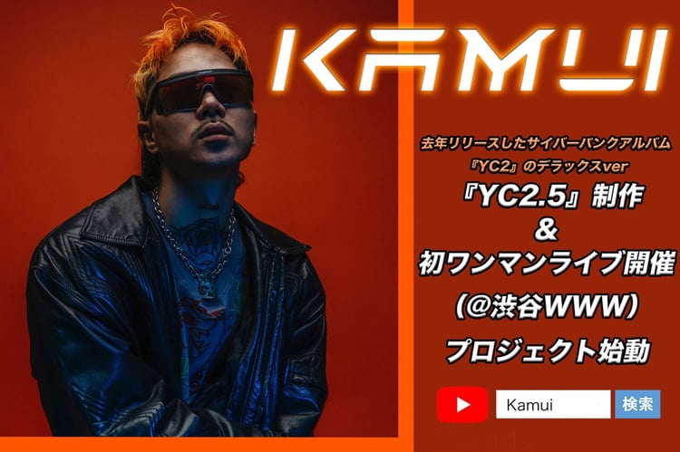 「YC2.5」はKamuiが昨年12月にリリースしたアルバム「YC2」の世界観やストーリーをより明確化し、フィーチャリングアーティストを迎えて制作する作品。ワンマンライブは2022年上旬に東京・WWWでの開催が予定されている。クラウドファンディングのリターンには「YC2.5」のCDやライブのチケットをはじめ、オーディオコメンタリー、アカペラデータ、盟友・Jun InagawaがデザインしたTシャツ・フーディなどが用意されている。クラウドファンディングプロジェクトの期間は1月10日まで。