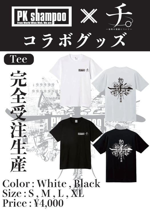 「チ。-地球の運動について-」は魚豊が「週刊ビッグコミックスピリッツ」で連載中のマンガで、「このマンガがすごい!2022」オトコ編2位に選ばれるなど大きな話題を集めている作品。PK shampooとのコラボグッズは魚豊からのラブコールを受け、ヤマトパンクス(Vo, G)と魚豊による対談が音楽ナタリーで実現したことをきっかけに制作された。