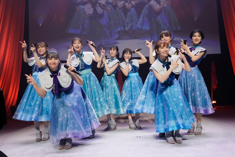 ステージ上のスクリーンにメンバーの幼少期の写真が映し出され、8人のにぎやかなナレーションが流れたあとは、サンタクロースやトナカイの衣装に身を包んでのクリスマスメドレーがスタート。まずは鈴木と高井、市川と小島がそれぞれペアになって登場し、サンタを楽しみに待つ女の子を演じながら「きよしこの夜」を歌唱した。「ジングルベル」ではサンタとトナカイに扮した佐々木と内藤、愛来と播磨のペアが笑顔いっぱいに仲よくダンス。最後は「We Wish You A Merry Christmas」がメンバー全員で披露され、「きよしこの夜」を歌った4人にサンタ役の佐々木と愛来がクリスマスプレゼントを手渡す。メドレー3曲を通して心温まるストーリーが届けられ、会場が和やかなクリスマスムードで染め上げられた。