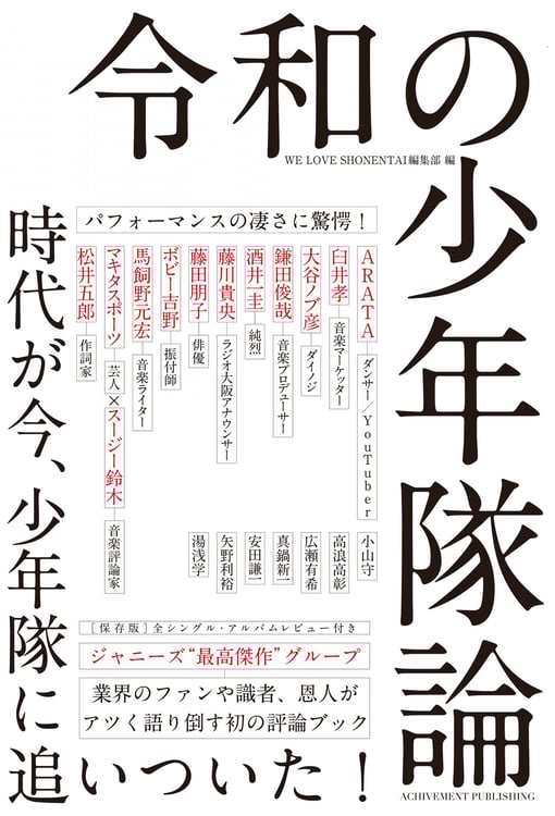 本書はジャニー喜多川がこれまで作り上げたグループのなかで「最高傑作」と称した少年隊の先駆性や普遍性を探るもの。純烈の酒井一圭、振付師のボビー吉野、芸人のマキタスポーツ、音楽評論家のスージー鈴木、作詞家の松井五郎、大谷ノブ彦(ダイノジ)ら業界のファンや識者、恩人が、少年隊の良質な楽曲、ダンスパフォーマンス、ミュージカルや舞台での業績などを語り尽くす。音楽評論家による全シングルとアルバムのレビューも付属しており、ジャニーズファンや、1980年代歌謡曲、シティポップ好きも楽しめる内容となっている。
