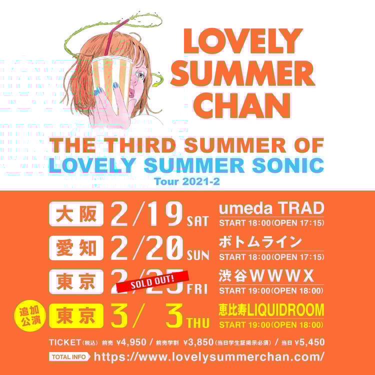ラブリーサマーちゃんが2月から東名阪ツアー「THE THIRD SUMMER OF LOVELY SUMMER SONIC Tour 2021-2」を開催。このツアーの追加公演を3月3日に東京・LIQUIDROOMで行うことを発表した。