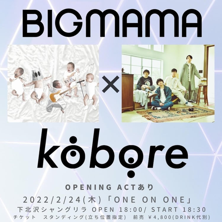 BIGMAMAとkoboreによるツーマンライブが、2月24日に東京・下北沢シャングリラで開催される。