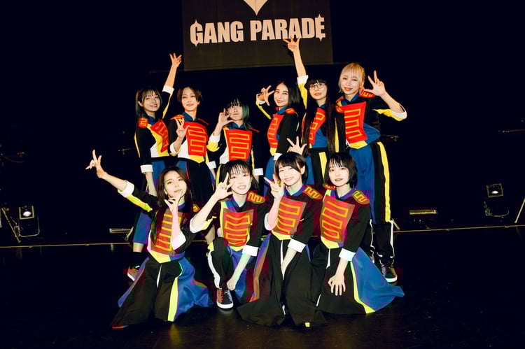 昨日1月1日の読売新聞朝刊にて、再始動がアナウンスされたGANG PARADE。2020年3月にGO TO THE BEDSとPARADISESの2グループに分裂して以来、事実上の活動休止状態になっていた。GO TO THE BEDSとPARADISESのメンバーのうち、過去にGANG PARADEに在籍していたのはヤママチミキ、ユメノユア、キャン・GP・マイカ、ココ・パーティン・ココ、テラシマユウカ、ユイ・ガ・ドクソン、月ノウサギ、GANG PARADE初加入となるのはキラ・メイ、チャンベイビー、キャ・ノン。この10人は年が明けたばかりの1月1日未明、新聞広告を見て再始動および本日1月2日に復活後一発目のライブが決まっていることを知り、スタジオにこもって急ピッチで準備を進めた。GANG PARADEのライブが行われるのは、2021年5月に元メンバーで現在は振付師として活動するカミヤサキの脱退ライブ以来、約7カ月ぶりのこと。会場には3月9日に発売されるメジャー2ndシングル「PARADE GOES ON」を東京・タワーレコード渋谷店で予約した人の中から、抽選で選ばれたラッキーな遊び人(GANG PARADEファンの呼称)が集まった。開演前には音楽事務所WACKの辻山マネージャーが登場し、「GANG PARADEの三カ条」として「1. ファンの総称は遊び人」「2. ライブ中の写真、動画撮影はどちらもOK」「3. ダイブ、リフト、サーフ、組体操などの危険行為は禁止」の3つを発表。「新年早々お集まりくださりうれしいです。今日ここに来てくださった300人の皆さまと一緒に、GANG PARADEは武道館を目指していきます! よろしくお願いします!」と挨拶した。
