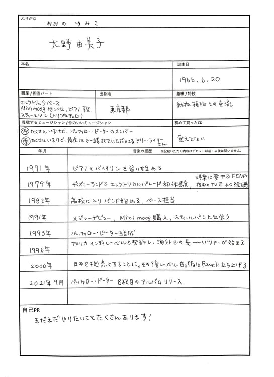 アーティストの音楽遍歴を紐解くことで、音楽を探求することの面白さや、アーティストの新たな魅力を浮き彫りにするこの企画。今回は、Buffalo Daughterのメンバーで、Hello, Wendy!やZAKYUMIKOとしても活躍し、Corneliusのサポートメンバーも務める大野由美子のルーツに迫った。