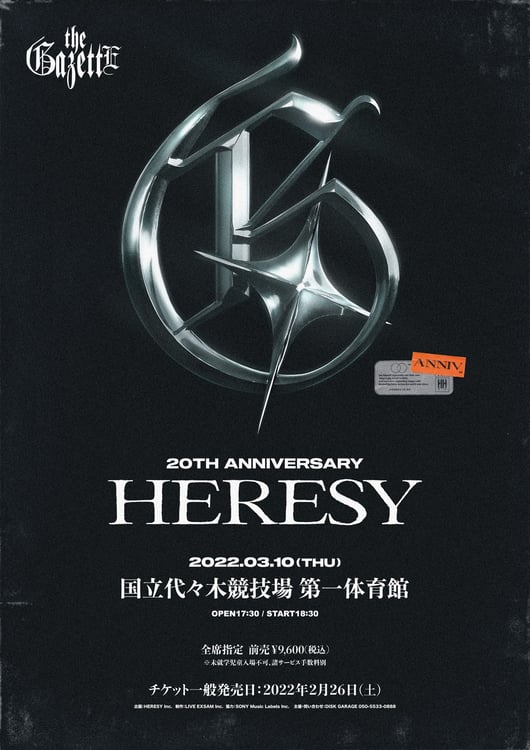 2002年3月10日に結成し、今年で20周年を迎えるthe GazettE。記念ライブのタイトルにはファンクラブの名称である「HERESY」が付けられた。チケットの一般販売は2月26日にスタートする。