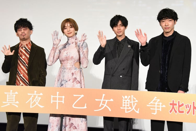 さらに登壇者の4人は、劇中で進行する東京破壊計画にちなんで、今年実行したい計画を回答。永瀬は「真夜中二輪計画」と発表し、その理由につて「King & Princeは僕以外、みんな二輪の免許を持ってるんですよ。僕も二輪免許を取得して、ゆくゆくはメンバーでツーリングしたら楽しそうだなと思いますね」と声を弾ませた。山ごもりをして年始を過ごしたという池田が「キャンプ」と答えたあと、柄本は「上半身と下半身の連動計画」と謎めいた答えを発表し、「上半身と下半身の体幹はあるんですけど、そこをつなげる体幹が著しく弱いとお医者さんから言われて」と説明。永瀬から「どうやってつなげるんですか?」とツッコまれた柄本は「そんな話、掘る?」と戸惑っていた。その後、4人目の二宮監督が「真夜中乙女戦争本当に観て欲しい計画」と回答すると、キャスト3人は大きくうなずいていた。