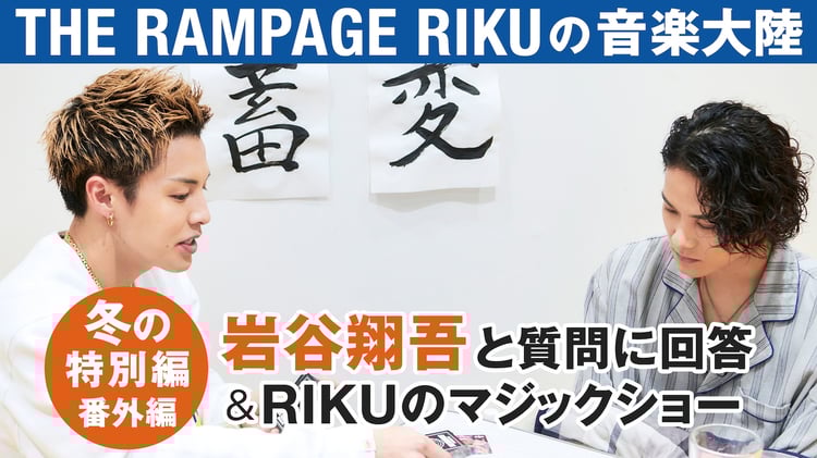 “しょごりく”の愛称で知られるRIKUと岩谷翔吾のコンビで送る「音楽大陸」冬の特別編。2本目の動画コンテンツでは、もつ鍋を食べ終わった2人が、Twitterで募集したファンからの質問に答える様子やTHE RAMPAGE のトランプ「トランペ」でRIKUがマジックを披露する様子をお届けする。