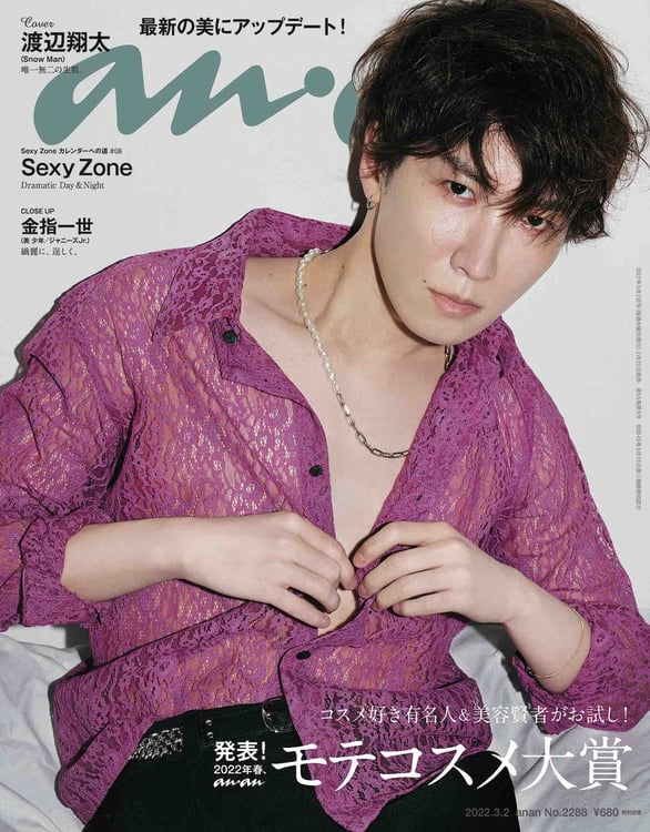 渡辺翔太(Snow Man)が、2月22日に発売される雑誌「anan」2288号の表紙とグラビアページに登場する。