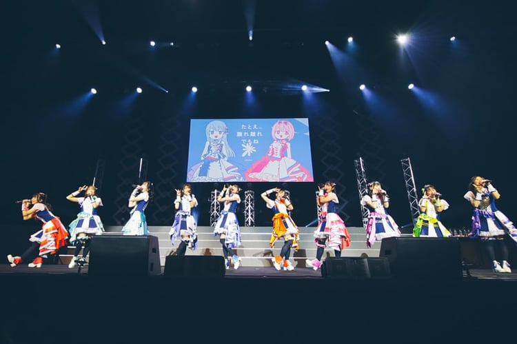 アンコールを求める拍手が鳴り響き、スクリーンには「VENUS PROGRAM」のロゴが映し出される。拍手に応えて再びステージにそろった星見プロダクションの10人は「Fight oh! MIRAI oh!」をエネルギッシュに届けた。最後に披露されたのはアニメの最終話の挿入歌「サヨナラから始まる物語」。彼女たちは別れの痛みを胸に、前に向かって進んでいく思いをまっすぐに歌い上げてライブを締めくくった。