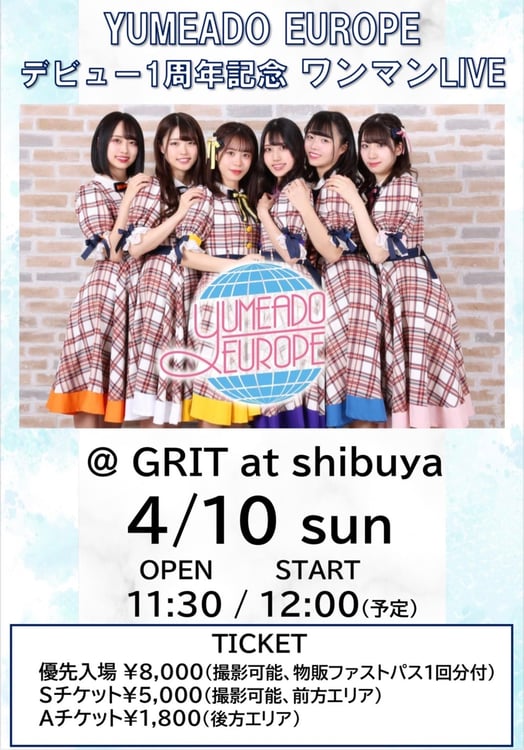 夢みるアドレセンスの妹分グループ・YUMEADO EUROPEが4月10日に東京・GRIT at Shibuyaでワンマンライブ「YUMEADO EUROPE デビュー1周年記念ワンマンLIVE」を開催する。