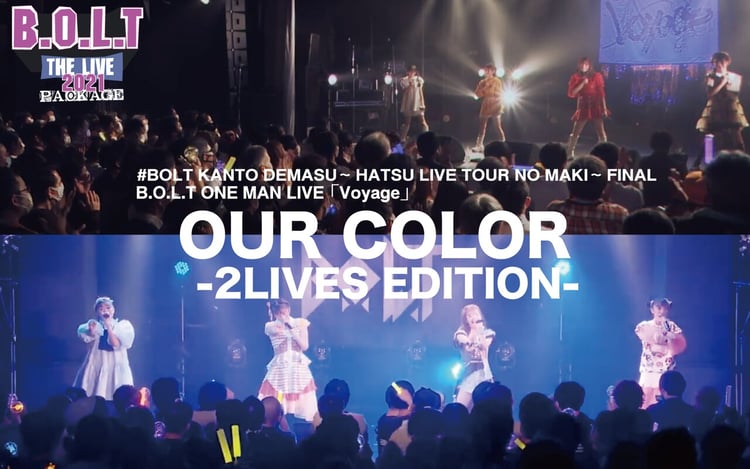 Blu-rayには昨年9月に神奈川・Yokohama Bay Hallで行われた初のライブツアー「#BOLT関東デマス ~初ライブツアーの巻~」ファイナルの第2部と、昨年11月に東京・LIQUIDROOMで開催されたワンマンライブ「Voyage」の模様が収録される。YouTubeにアップロードされた「OUR COLOR -2LIVES EDITION-」は、両公演の「OUR COLOR」のライブ映像を編集して組み合わせたもの。この曲はどちらのライブでも本編のラストに披露された。