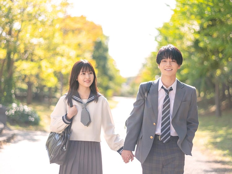 「君が落とした青空」は櫻いいよの同名小説をもとにYuki Saito監督が実写化した作品。高校生の水野実結が交通事故に遭った恋人・篠原修弥を助けるため、何度も“同じ日”を繰り返すうちに、彼が隠していた事実を知るというストーリーが描かれている。メイキング映像は、実結と修弥の登校シーンの撮影現場を捉えたもの。2人はあえて視線が合わないようにお互いに目線を外した状態で演技を始めるが、うまくタイミングが合わず、照れたように笑い合っている。さらに、その際に撮られた場面写真も公開された。写真には木漏れ日の中で手を繋いで歩く2人の初々しい姿が収められている。
