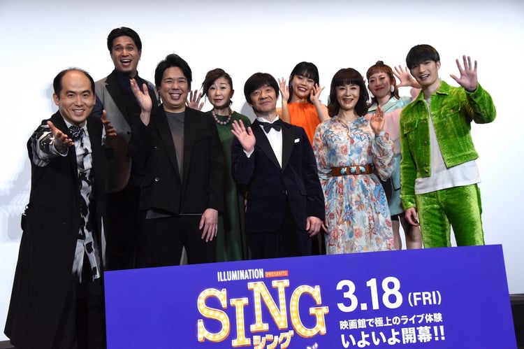 「SING/シング:ネクストステージ」は2017年に日本公開された映画「SING/シング」の続編。コアラのバスター・ムーンとその仲間たちが、世界で誰も観たことがないようなショーをやり遂げるため新たな挑戦をする。舞台挨拶には5人のほか内村光良、斎藤司(トレンディエンジェル)、田中真弓、大地真央も出席した。