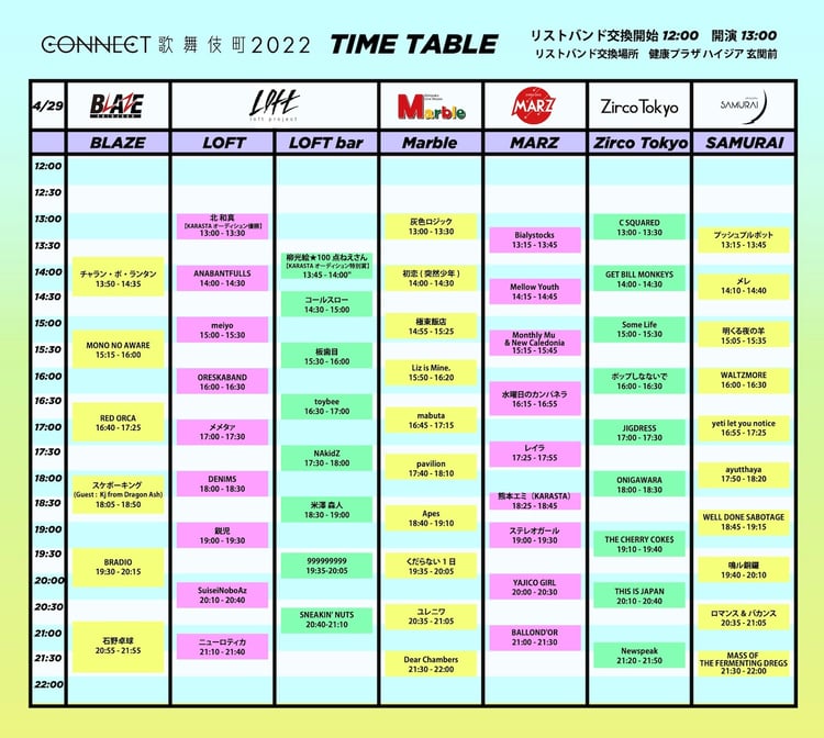 2022年4月29日(金・祝)東京都 新宿BLAZE / 新宿LOFT / 新宿MARZ / Marble / Zirco Tokyo / 新宿SAMURAI