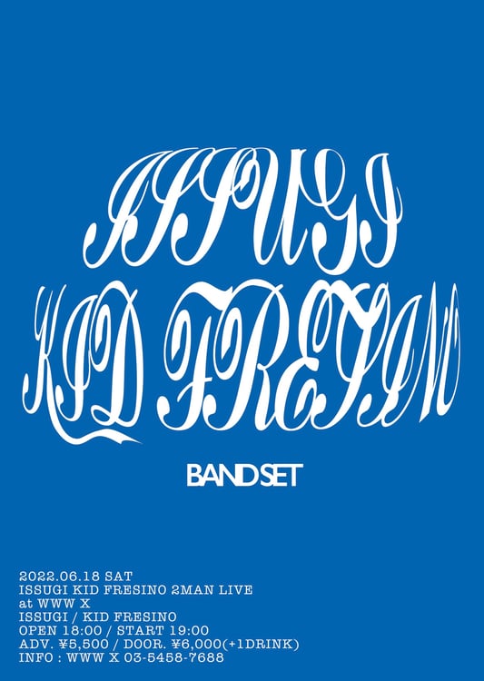 本公演でISSUGIは荒田洸(Dr / WONK)、井上幹(B / WONK)、BudaMunk(Pads)、DJ K-FLASH(Turntable)、金子巧(Key / cro-magnon)、MELRAW(Sax, Fl, G)、KID FRESINOは三浦淳悟(B / ペトロールズ)、佐藤優介(Key)、斎藤拓郎(G / Yasei Collective)、石若駿(Dr / Answer to Remember、millennium parade、SMTK)、小林うてな(Steelpan, MainStage, Cho)、西田修大(G)を迎えたバンド編成でそれぞれライブを行う。チケットは明日4月23日10:00にイープラスで発売される。