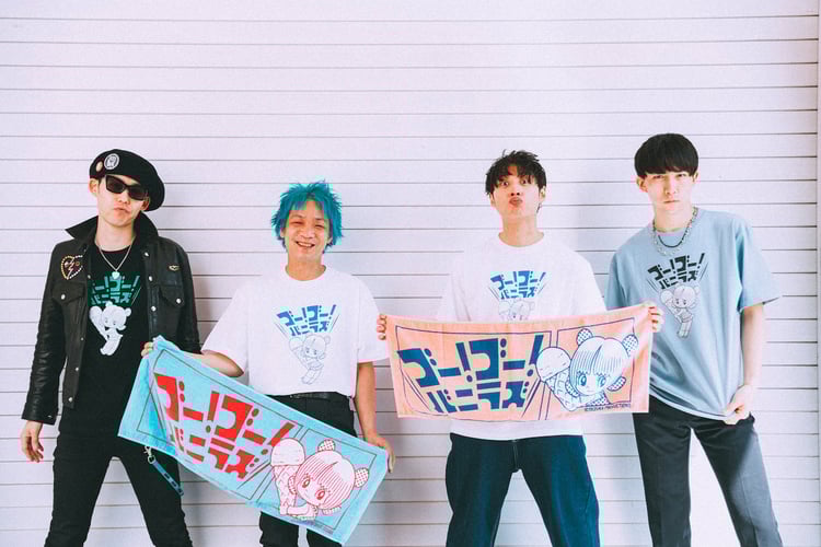 コラボグッズはTシャツ、フェイスタオル、キーホルダーの3種類。go!go!vanillasが5月3日に出演する野外フェス「JAPAN JAM 2022」の会場で販売される予定で、以降の販売公演についてはオフィシャルサイトでアナウンスされる。