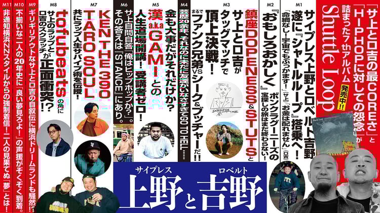 レビューを担当したのは、サ上とロ吉の活動を長きにわたり見守ってきた音楽ライターの高木“JET”晋一郎。掲載ページではアルバムを試聴しながらレビューを読むことができる。全曲レビューと連動した中吊り広告風の画像も公開された。