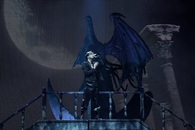オープニング映像が映し出されたディスプレイが2つに割れると、中からØMIが「ANSWER」シリーズのミュージックビデオでお馴染みのアルテミス像、そしてダンサーたちとともに登場。黒のセットアップをまとったØMIは「Can You See The Light」「Nobody Knows」といったナンバーで観客のテンションを上げていった。