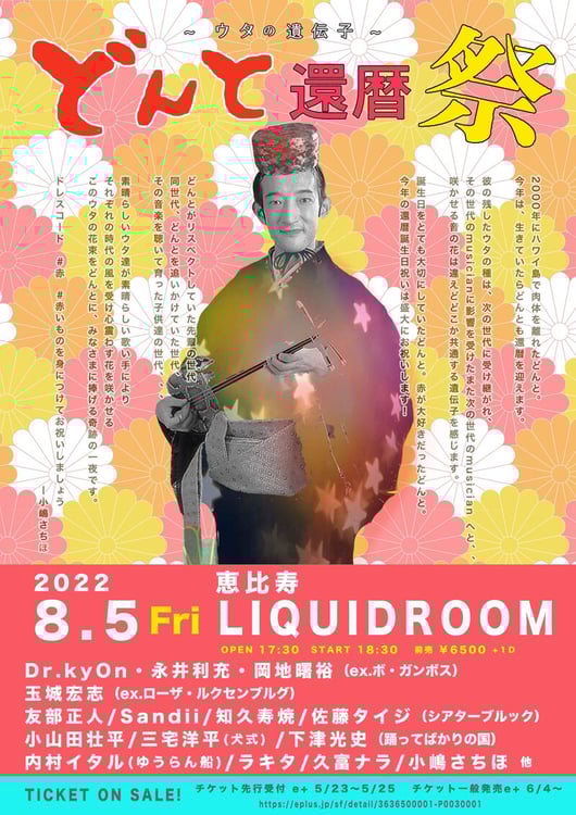 どんとの妻である小嶋さちほは、このライブについて「彼の残したウタの種は、次の世代に受け継がれ、その世代のmusicianに影響を受けたまた次の世代のmusician へと、、、 咲かせる音の花は違えど、どこか共通する遺伝子を感じます。誕生日をとても大切にしていたどんと。赤が大好きだったどんと。今年の還暦誕生日祝いは盛大にみんなでお祝いしましょう!」と語っている。現在イープラスではチケットの先行予約を受付中。