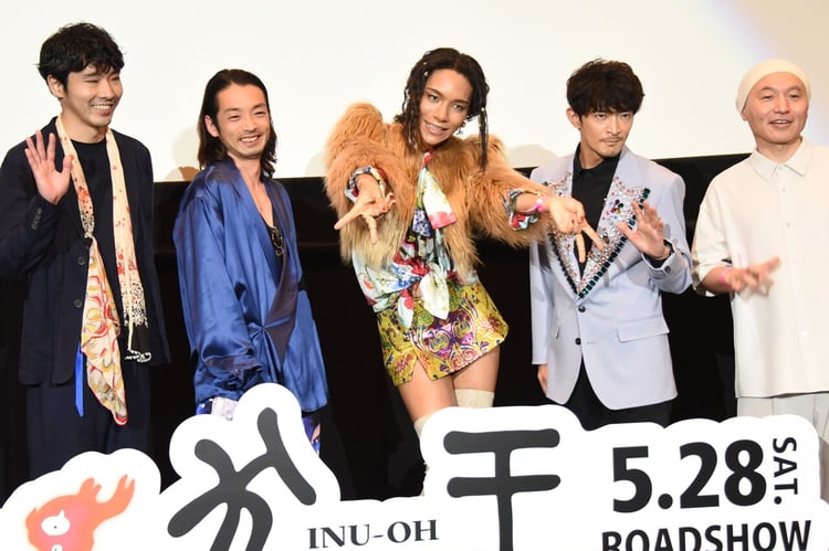本日5月28日に東京・新宿バルト9で行われた劇場アニメーション作品「犬王」の初日舞台挨拶に、アヴちゃん(女王蜂)、森山未來、津田健次郎、柄本佑、監督の湯浅政明が登壇した。