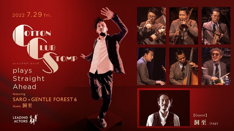 本公演にはGENTLE FOREST JAZZ BANDから村上基(Trumpet)、張替啓太(Trombone)、多田尋潔(Alto Sax, Clarinet)、別所和洋(Piano)、藤野“デジ”俊雄(B)、松下マサナオ(Dr)の6名、タップダンサーのSARO、そしてゲストタップダンサーの洞至が出演。ストレートアヘッドジャズをテーマに、1920年代のアメリカ・ニューヨークを舞台にした映画「コットンクラブ」のワンシーンを彷彿とさせるエンタテインメントショーを繰り広げる。チケットは6月14日にWeb先行予約受付がスタート。