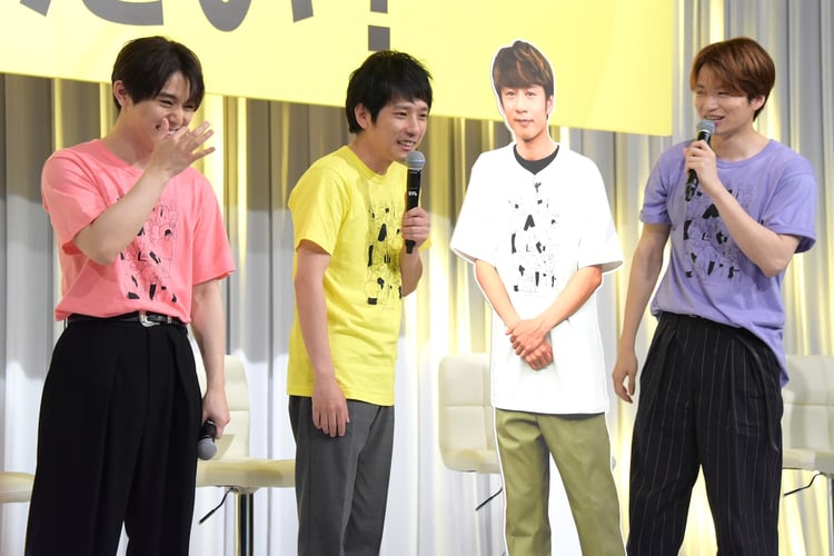 今年の「24時間テレビ」のメインパーソナリティを務めるのは、昨年4月にスタートしたYouTubeチャンネル「ジャにのちゃんねる」のメンバーである二宮、中丸雄一(KAT-TUN)、山田、菊池。新型コロナウイルスに感染した中丸を除く3人は、チャリティランナーの兼近大樹(EXIT)、24時間テレビサポーターの徳光和夫、総合司会の羽鳥慎一と水卜麻美(日本テレビアナウンサー)とともに“チャリTシャツ”を着て会見に出席し、トークセッションを繰り広げた。