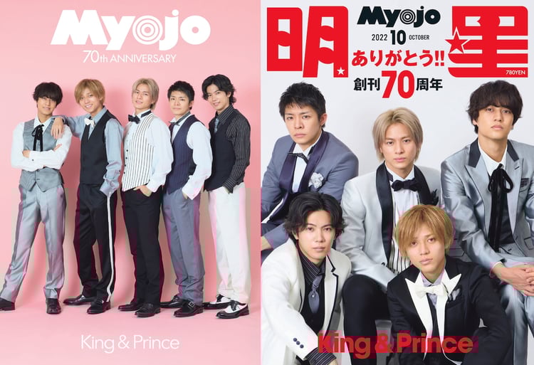 アイドル雑誌「明星(Myojo)」の創刊70周年を記念した2022年10月号の表紙に、King & Princeが登場する。