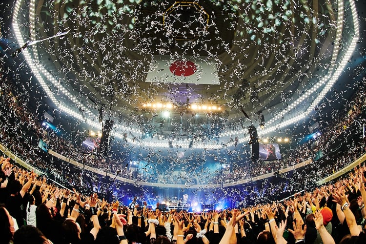 SLAVE(LUNA SEAファンの呼称)が360°を囲む純白のセンターステージというLUNA SEAの新たな一歩を印象付ける舞台が用意されたこの日。開演時刻を30分経過した頃、ステージ中央に設置された1本のマイクスタンドにスポットライトが落ち、RYUICHIがたった1人でステージへ。復活を祝うような割れんばかりの拍手を全身で浴びながらた彼は、マイクに手を添えると「WISH」をアカペラで歌い出した。アンコールの定番として愛されているナンバーをライブの1曲目に据え、さらにアカペラでパフォーマンスするという、LUNA SEAにとっては前代未聞とも言える演出に観客が驚く中、RYUICHIは手術とリハビリを経て手に入れた力強くしなやかなボーカルを全方位に響かせる。会場にいる誰もがRYUICHIの完全復活を確信したとき、真矢(Dr)を皮切りにSUGIZO(G, Violin)、INORAN(G)、J(B)がステージに合流。5人の音が重なったとき、美しい弧を描きながら銀テープが放たれ、場内の祝祭的なムードに拍車がかかる。「武道館ー!」。そう叫んだRYUICHIの声にはSLAVEと再会できた喜びがあふれ、そんな彼の姿を真矢、SUGIZO、INORAN、Jも笑顔で見守った。