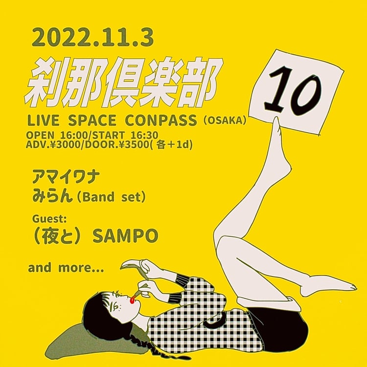 みらんとアマイワナによる共同企画イベント「刹那倶楽部」の第10回が11月3日に大阪・CONPASSで開催される。