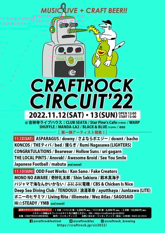 11月12、13日に東京・吉祥寺のライブハウス7会場にてサーキットイベント「CRAFTROCK CIRCUIT '22」が開催される。
