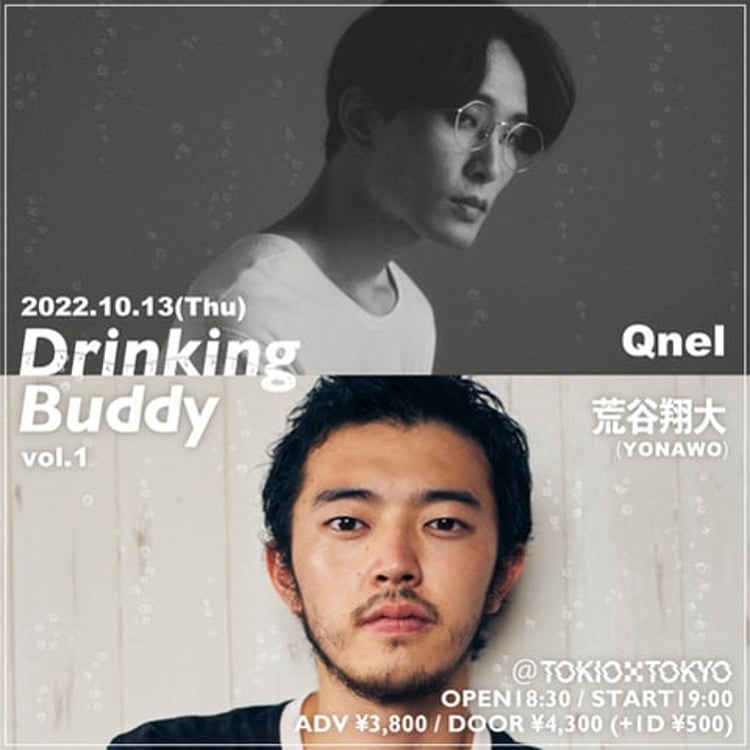 高橋健介(LUCKY TAPES)のソロプロジェクト・Qnelと荒谷翔大(yonawo)のツーマンライブ「Drinking Buddy vol.1」が、10月13日に東京・TOKIO TOKYOにて開催される。
