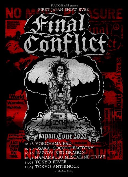 10月から11月にかけてアメリカのハードコアパンクバンド・Final Conflictの来日公演が行われることが決定。各公演の競演者が発表された。