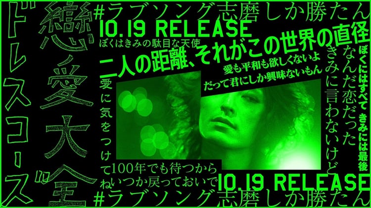 「#ラブソング志磨しか勝たんパンチライン」は10月19日にニューアルバム「戀愛大全」がリリースされることに合わせて開催されている企画。ドレスコーズおよび毛皮のマリーズの恋愛ソング、志磨遼平が提供したラブソングの中から“志磨しか勝たん”と思うフレーズをファンから募っている。特設ページ内には3人が選んだパンチラインとプレイリストに加え、プレイリストの選曲理由、志磨への思いをつづったコメントも掲載されている。