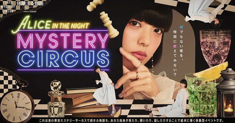 「ALICE IN THE NIGHT MYSTERY CIRCUS」は「リアル脱出ゲーム」シリーズを運営する、株式会社SCRAPが展開するイベント「体験する物語project」の新作。「不思議の国のアリス」をテーマに掲げ、現実の世界に迷い込んでしまった不思議の国の住人と参加者が交流することで、物語が進展していく。